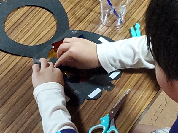 - カラーセロハンを切って台紙に張る
