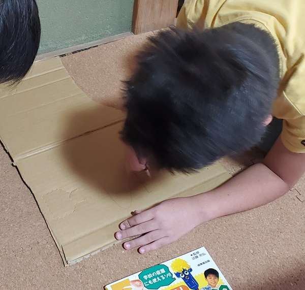 さっそくA君は、段ボールに下書きを始めました。